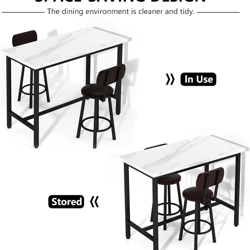🏡Compact Design and Versatile Application: This 3 Piece Pub Dining Set comprises a 39” diameter rectangle pub table and two accompanying bar stools. The table dimensions are (39.37" L x 15.74"W x 35.43"H), while each bar stool measures (11.81"L x 11.81"W x 24"H). Whether used as a small pub dining table, breakfast bar, coffee bar, or homework station, this set offers versatility and functionality for any space.